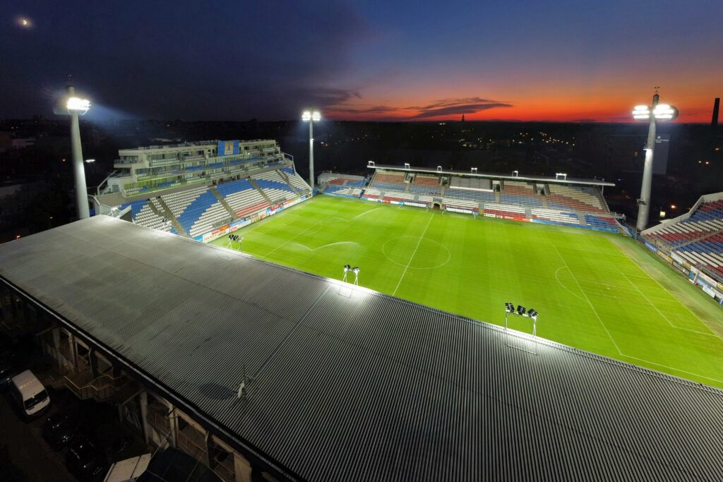 Naše společnost úspěšně dokončila rekonstrukci osvětlení na Andrově stadionu v Olomouci, domovském stánku prvoligového klubu SK Sigma Olomouc. Nové osvětlení nyní splňuje požadavky úrovně B podle standardů UEFA, což znamená vertikální intenzitu přes 1000 lx a horizontální intenzitu 1500 lx. Stadion je tak plně připraven pro televizní přenosy a mezinárodní utkání.